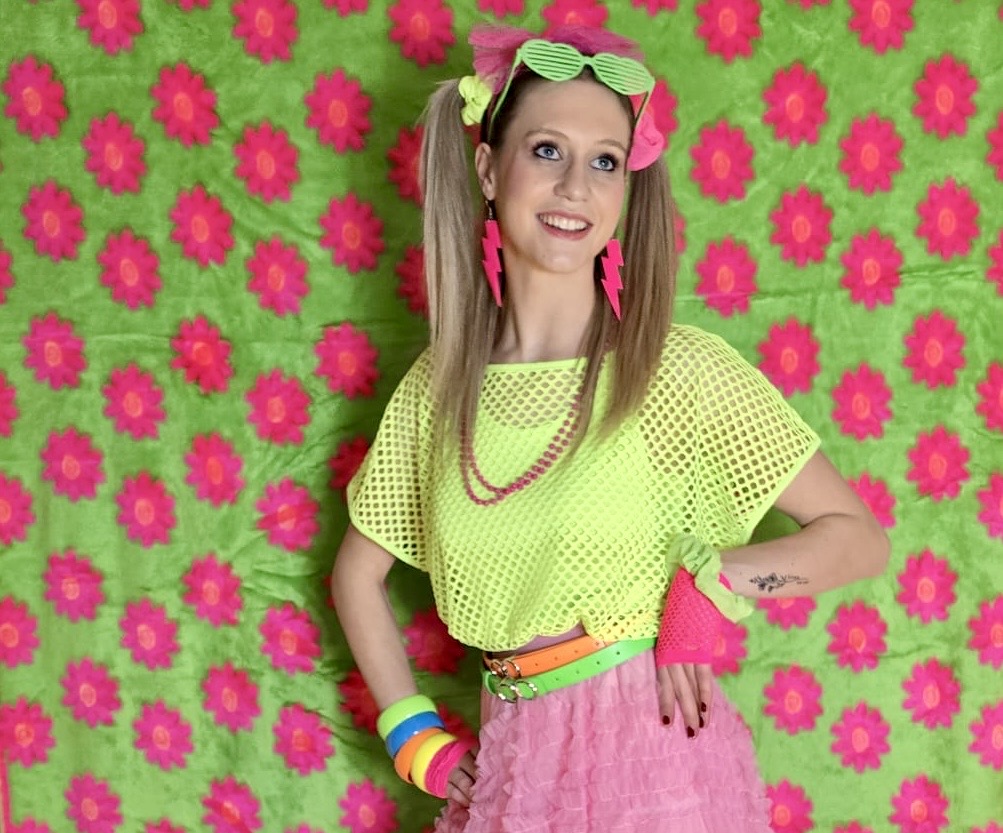 Op zoek naar retro, opvallend en kleurrijk? Dan is deze top een echte must-have. De top brengt de iconische jaren tachtig stijl direct tot leven en is een echte blikvanger. Het opvallende visnet moop-effect zorgt voor een authentieke eighties uitstraling, ideaal voor themafeesten, festivals, carnaval, dansoptredens en party outfits.